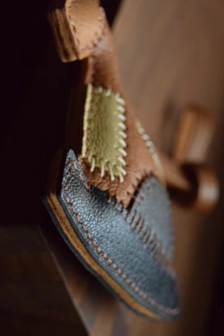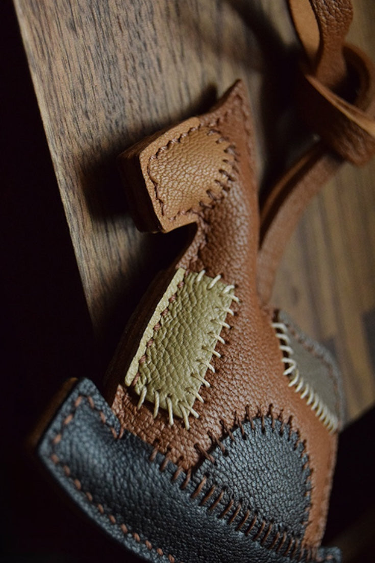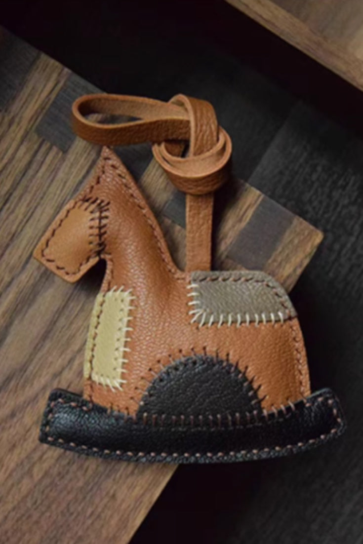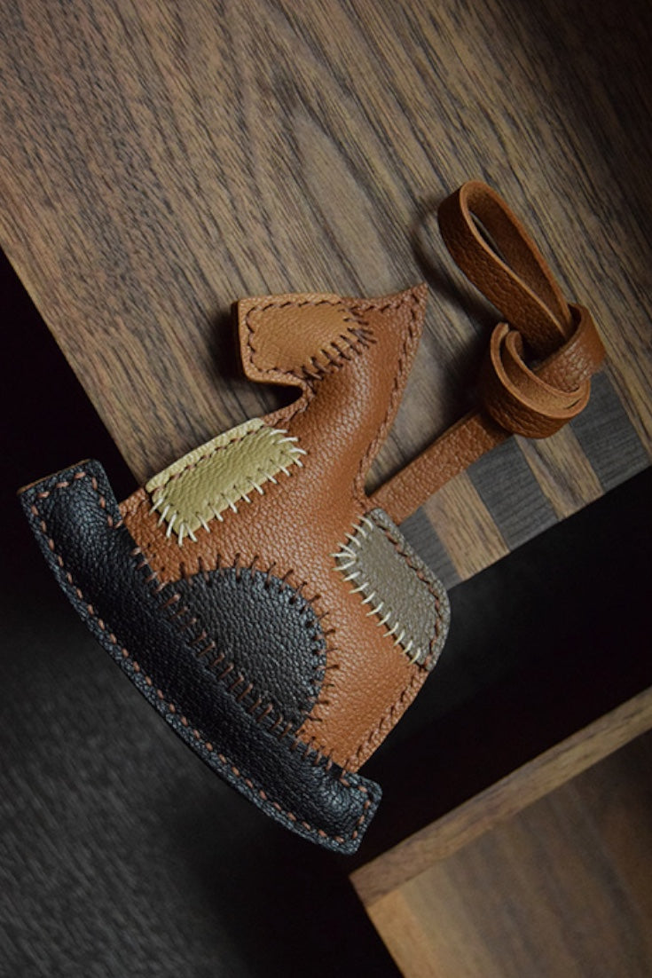 Crafted with precision and care, the HORSE BAG CHARM is entirely handmade, featuring double-needle saddle stitching for added durability and a polished finish. It's made from grained sheepskin imported from France, providing a luxurious and textured feel. The edges of the charm are naturally cut without any oil, maintaining a rustic yet refined appearance.