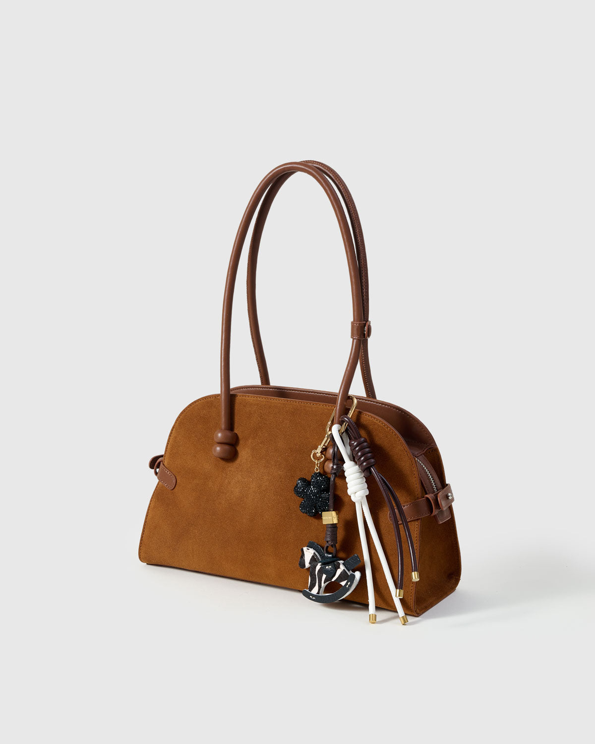 The ZEBRA RIDE STACK CHARM – LUCKY CLOVER EDITION from Sticky Zoo® is a story of crafted contrasts—bold stripes and subtle shine. Featuring a hand-cut zebra-print vegan-leather rocking horse, a black crystal clover charm, and smooth leather cords in ivory and espresso brown on polished 18K gold hardware, it’s an emblem of playful grace and everyday fortune.